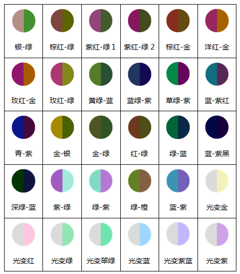 1.干涉型(外觀具有強(qiáng)烈的金屬質(zhì)感色澤,顏色品種多樣,可以直接印刷達(dá)到顏色變化效果)